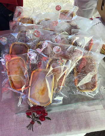 Gâteaux préparés par des membres du MCR à l'attention des paroissiens et offerts après la messe